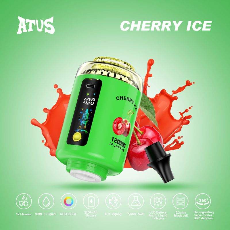 ATUS Hookah Shisha 120K Puffs LED Display RGB Light DTL Puff 2500 mAh Battery 360 Degree Valve Disposable Vape